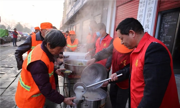 “謝謝黨和政府、工會(huì)組織對(duì)我們的關(guān)懷?!表?xiàng)城市文明路愛心粥屋前,環(huán)衛(wèi)工閆愛云端著剛剛盛好的暖心粥開心地說。