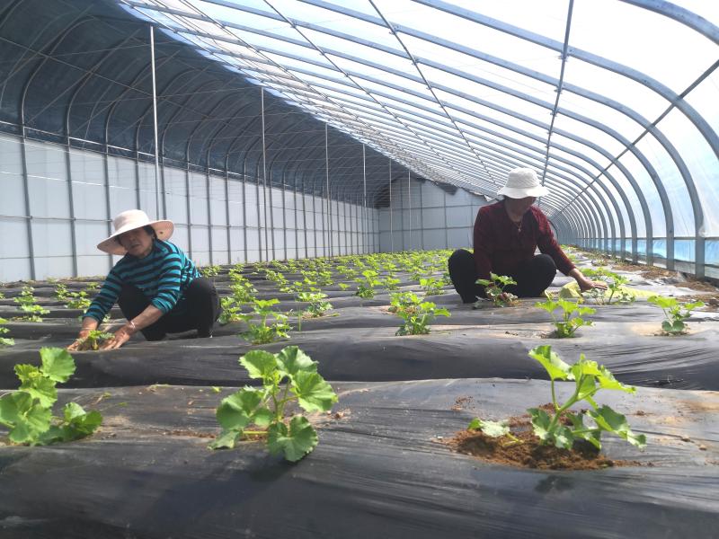 “當(dāng)下,正逢‘吊秧’香瓜生長(zhǎng)旺盛的時(shí)候,這幾天,我和馮大姐一直在大棚里忙活,每天有事兒干、有人陪說話,還可以掙到60元的工錢,就在家門口,多好?。 ?月8日,在半截樓村新建的溫室大棚內(nèi),65歲的李愛蓮一邊忙著為瓜秧打岔,一邊對(duì)記者說。