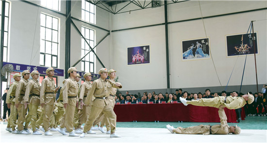 4月12日下午,項城市雜技藝術(shù)學校通過運用雜技藝術(shù)編創(chuàng)的紅色雜技劇,在該校首次面向社會展演,以慶祝建黨100周年。同學們穿著解放軍服裝,模擬渡江、登城、翻越城墻、槍林彈雨戰(zhàn)斗等場景,演繹了一場紅色文化教育的情景劇,讓人耳目一新,受到大家一致好評。周口日報·周道客戶端記者 梁照曾 攝