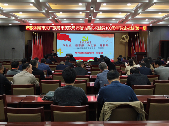 4月13日晚7:00至8:30,項(xiàng)城市教育體育局黨史夜校學(xué)習(xí)班第一期在該局會(huì)議室正式開(kāi)班。來(lái)自項(xiàng)城市教體局、文廣新局、民政局、信訪(fǎng)局的近200名黨員參加了此次培訓(xùn)。