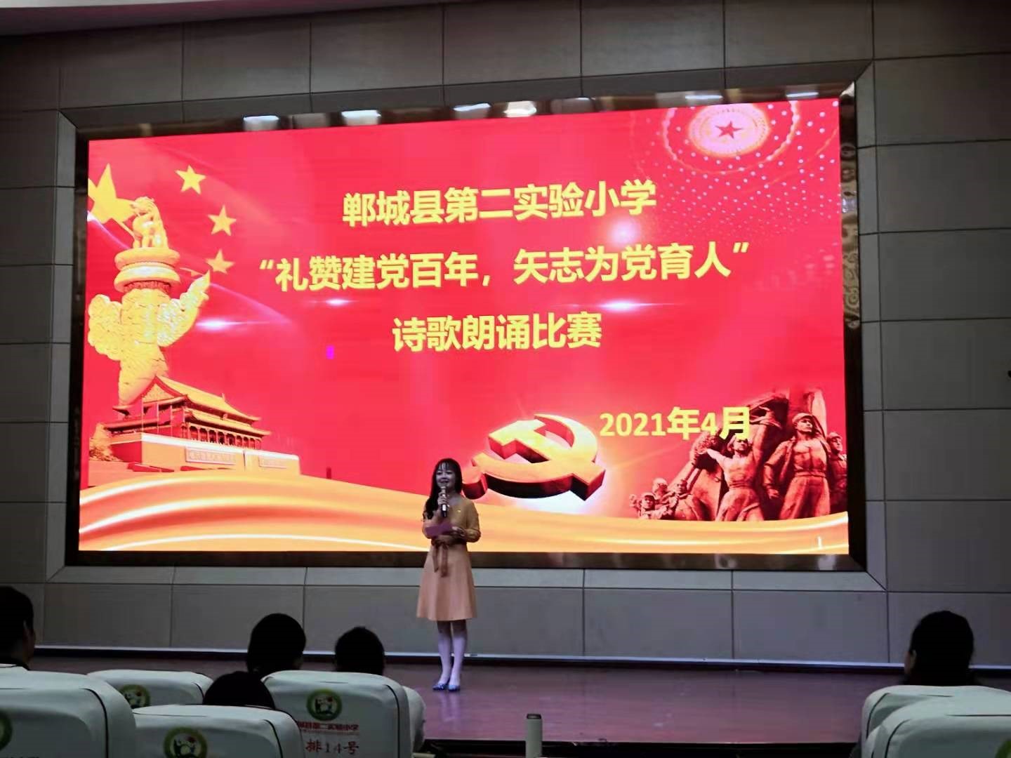 4月14日,鄲城縣第二實驗小學(xué)舉行關(guān)于“百年榮光·每個人都了不起”系列主題活動——獻(xiàn)禮建黨100周年詩歌朗誦比賽。26位教師分10支代表隊參賽。