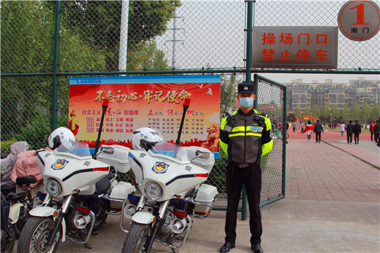 4月16日,鄲城一高舉行第12屆18歲成人儀式暨奠基高考決勝2022誓師大會(huì)。鄲城縣公安局副局長朱衛(wèi)兵率領(lǐng)交警鐵騎隊(duì)兵分4路,從早上7時(shí)至上午11時(shí)在學(xué)校周圍維護(hù)交通秩序,確保數(shù)千名家長的車輛有序停放,疏堵保暢。