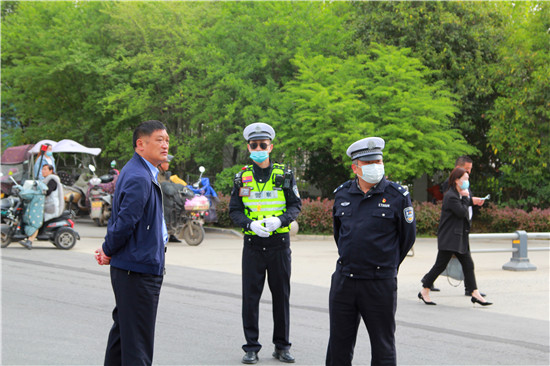 活動(dòng)計(jì)劃是上午9時(shí)開始,朱衛(wèi)兵帶領(lǐng)鐵騎隊(duì)從早上7點(diǎn)就來到校園周邊布置崗哨,對(duì)鄲城一高周邊的校園路、公園東路、一高北路、一高東路、公園北路進(jìn)行車輛引導(dǎo),共出動(dòng)警力46人,警車一部,警用摩托車21輛,形成了各路口有崗、50米一哨。一方面確保車輛有序停放,另一方面守護(hù)師生和家長安全。