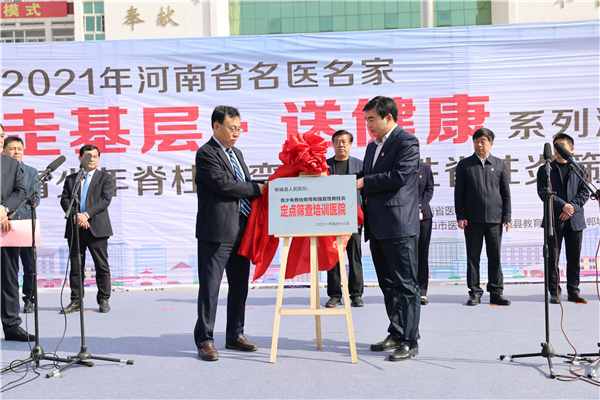 4月18日,2021年河南省名醫(yī)名家“走基層?送健康”系列活動——走進鄲城暨在校青少年脊柱側(cè)彎和強直性脊柱炎篩查義診?志愿者服務(wù)行動在鄲城縣第二實驗中學(xué)啟動。