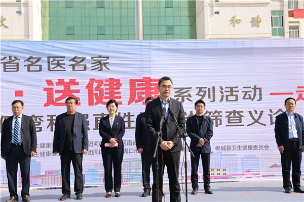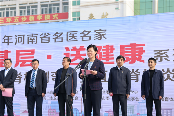 羅文閣致歡迎詞。她說,只有全民健康才有全面小康。今天,河南省在校青少年脊柱側(cè)彎和強直性脊柱炎篩查義診活動走進鄲城,對鄲城孩子們的健康成長是件好事、實事,我們將全力以赴,做好配合,爭取讓項目惠及更多患者,同時希望全縣廣大醫(yī)護工作者以這次活動為契機,珍惜難得的學(xué)習(xí)機會,從名醫(yī)名家身上,學(xué)習(xí)出類拔萃的醫(yī)療技術(shù)、德藝雙馨的大醫(yī)情懷、心系群眾的高尚情操、不辭勞苦的敬業(yè)精神,不忘初心、牢記使命,勤學(xué)苦練、提升本領(lǐng),為鄲城創(chuàng)建國家健康縣城、做好鞏固拓展脫貧攻堅成果同鄉(xiāng)村振興有效銜接作出更大貢獻。