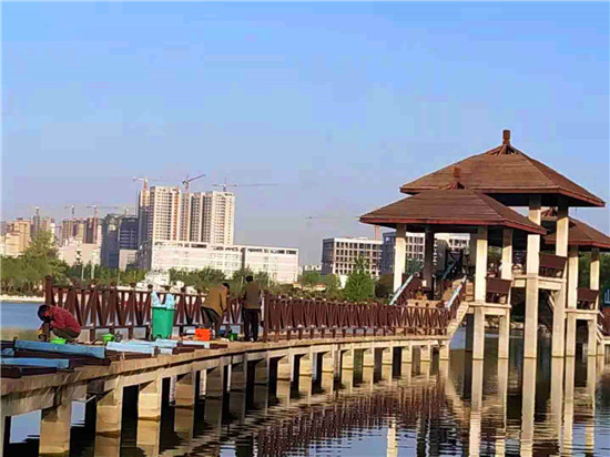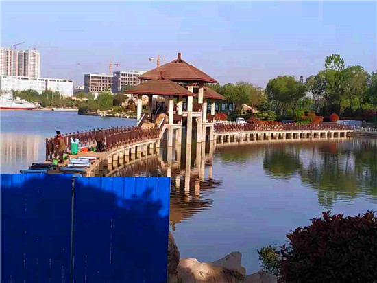 近日,位于文昌大道的周口公園啟動(dòng)了對(duì)水上棧道的維修。周口公園的水上棧道和亭榭是一道美麗的風(fēng)景,成為人們游園打卡之地,然而因建造時(shí)用的是木材,歷經(jīng)風(fēng)雨,朽壞嚴(yán)重,存在安全隱患,周口公園方面于去年將之封閉。記者在現(xiàn)場看到,工人已經(jīng)將木質(zhì)扶欄、道上木板拆除,正在安裝鐵護(hù)欄。鐵護(hù)欄油漆成棕褐色,依然保持原棧道的風(fēng)格和色調(diào)。②7