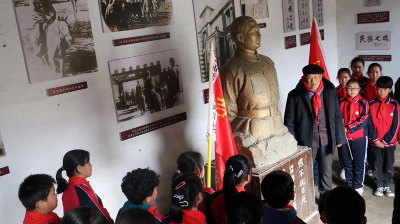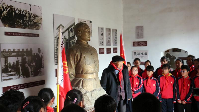 在全國(guó)上下掀起黨史學(xué)習(xí)教育熱潮之際,近日,來(lái)自吉鴻昌小學(xué)六(1)班的30名孩子,在學(xué)校少先隊(duì)輔導(dǎo)員的帶領(lǐng)下來(lái)到呂潭學(xué)校舊址,開(kāi)展主題為“弘揚(yáng)鴻昌精神、傳承紅色基因”的主題隊(duì)會(huì)活動(dòng),參觀了吉鴻昌學(xué)校和吉鴻昌故居,循著英雄的足跡,親身感受吉鴻昌精神的內(nèi)涵,接受一場(chǎng)紅色的精神洗禮。期間,在吉鴻昌將軍塑像前,何國(guó)志老人生動(dòng)地講解了吉鴻昌將軍親手?jǐn)捞弥?、?chuàng)辦吉鴻昌學(xué)校、首次向中國(guó)人介紹電視等身前事跡,在場(chǎng)的孩子感動(dòng)得熱淚盈眶。 “聽(tīng)了何爺爺?shù)闹v述,我被吉鴻昌將軍的事跡深深感動(dòng),長(zhǎng)大后也要成為一名像他一樣的人!”張晨曦同學(xué)說(shuō)。