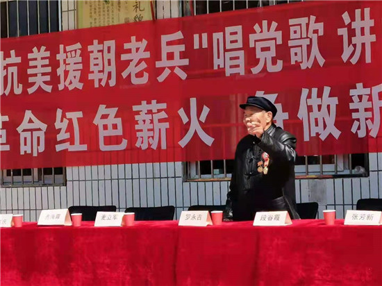 4月19日上午,鄲城縣新城街道黨工委邀請轄區(qū)抗美援朝老兵羅永吉老人走進辦事處、9個社區(qū)和轄區(qū)中心學校,開展進機關、進社區(qū)、進學?!俺h歌、講黨史、憶先烈、親經歷”主題活動,進一步增強廣大黨員干部、師生群眾聽黨話、跟黨走的政治覺悟,營造始終聽黨話、跟黨走的濃厚氛圍。