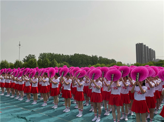 開幕式還舉行了彩扇舞、啦啦操、中國功夫、歌曲等文體表演。其中,彩扇舞《盛世花開》,由該校文化教育學(xué)院300名女生手持彩扇,跟隨著不同的音樂節(jié)奏變換著不同的色彩與隊(duì)形,依次拼出由鐮刀和錘頭組成的中國共產(chǎn)黨黨徽、象征體育精神的奧運(yùn)五環(huán)、“慶祝建黨100周年”、“周職20周年校慶”等圖形和字樣,表達(dá)著對黨的熱愛和對學(xué)校的祝福。表演者王真真說:“大家協(xié)同配合才能把節(jié)目表演好,這個(gè)節(jié)目我們排練了一個(gè)多月。雖然很辛苦,但是看到節(jié)目順利演出,感到很有成就感。”