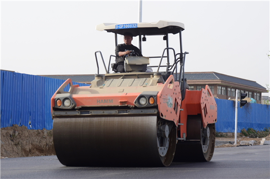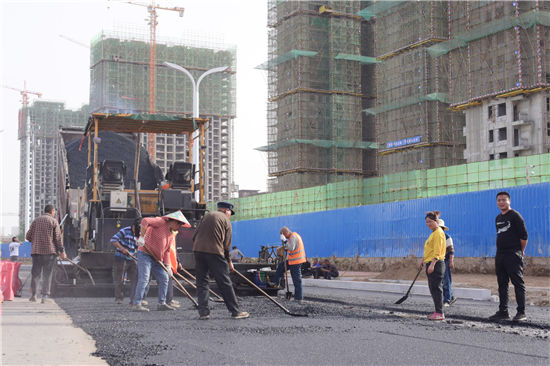 西側(cè)的非機動車道正在最后的柏油鋪設(shè)