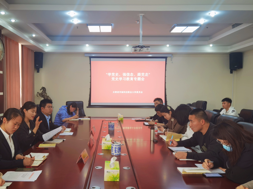 為認(rèn)真貫徹習(xí)近平總書記在黨史學(xué)習(xí)教育動員大會上的重要講話精神,引領(lǐng)廣大黨員深入學(xué)習(xí)黨的歷史,深化青年厚植愛黨、愛國、愛社會主義的情感,4月29日,共青團河南科技職業(yè)大學(xué)委員會召開“學(xué)黨史、強信念、跟黨走"黨史學(xué)習(xí)教育專題會。