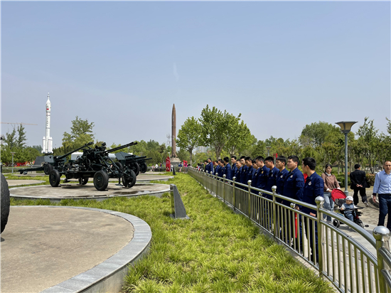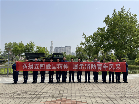 5月4日上午,天氣晴朗。在周口公園,周口市城鄉(xiāng)一體化示范區(qū)消防大隊的青年消防隊員們通過跑步訓(xùn)練等方式慶祝五四青年節(jié)。消防隊員欒慶帥告訴記者:“今天是五四青年節(jié),我們通過訓(xùn)練、參觀國防設(shè)施這樣的方式,來表達我們的愛國熱情?!?span style="text-indent: 32px;">②9
