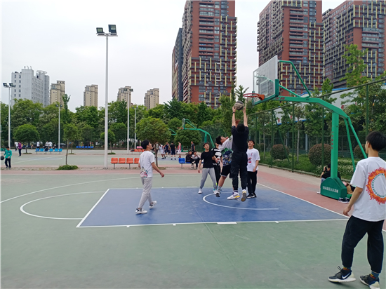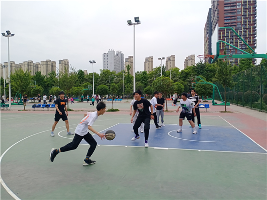 5月2日,記者在周口市體育中心籃球場地看到,市民們?cè)诩偃绽镞M(jìn)行體育鍛煉的熱情不減,他們紛紛來到籃球場打起了籃球,既鍛煉了身體,又度過了一個(gè)有意義的假期。②9