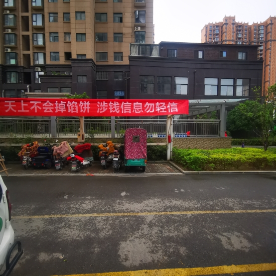據(jù)介紹,“金色東方”小區(qū)建成于2014年,占地120畝,居住人口2516戶,共8176人。廣場(chǎng)是小區(qū)里最熱鬧的地方。這里不僅擺放著詐騙案例展板,而且LED大屏上反復(fù)播放“局長說反詐”視頻,時(shí)刻提醒居民繃緊防詐弦。通過張貼標(biāo)語、擺放展板、播放視頻等形式,“金色東方”小區(qū)營造了全方位反詐的濃厚氛圍,基本達(dá)到“處處有提醒”的效果。據(jù)悉,2月份以來,該小區(qū)未發(fā)生一起電信網(wǎng)絡(luò)詐騙案件。