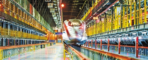 鄭州南動車所對標(biāo)準(zhǔn)組動車進行檢修。近年來,高鐵新線的陸續(xù)開通,為鄭州逐步建設(shè)成國際性綜合交通樞紐提供了強勁動力。 王 錚攝(中經(jīng)視覺)
