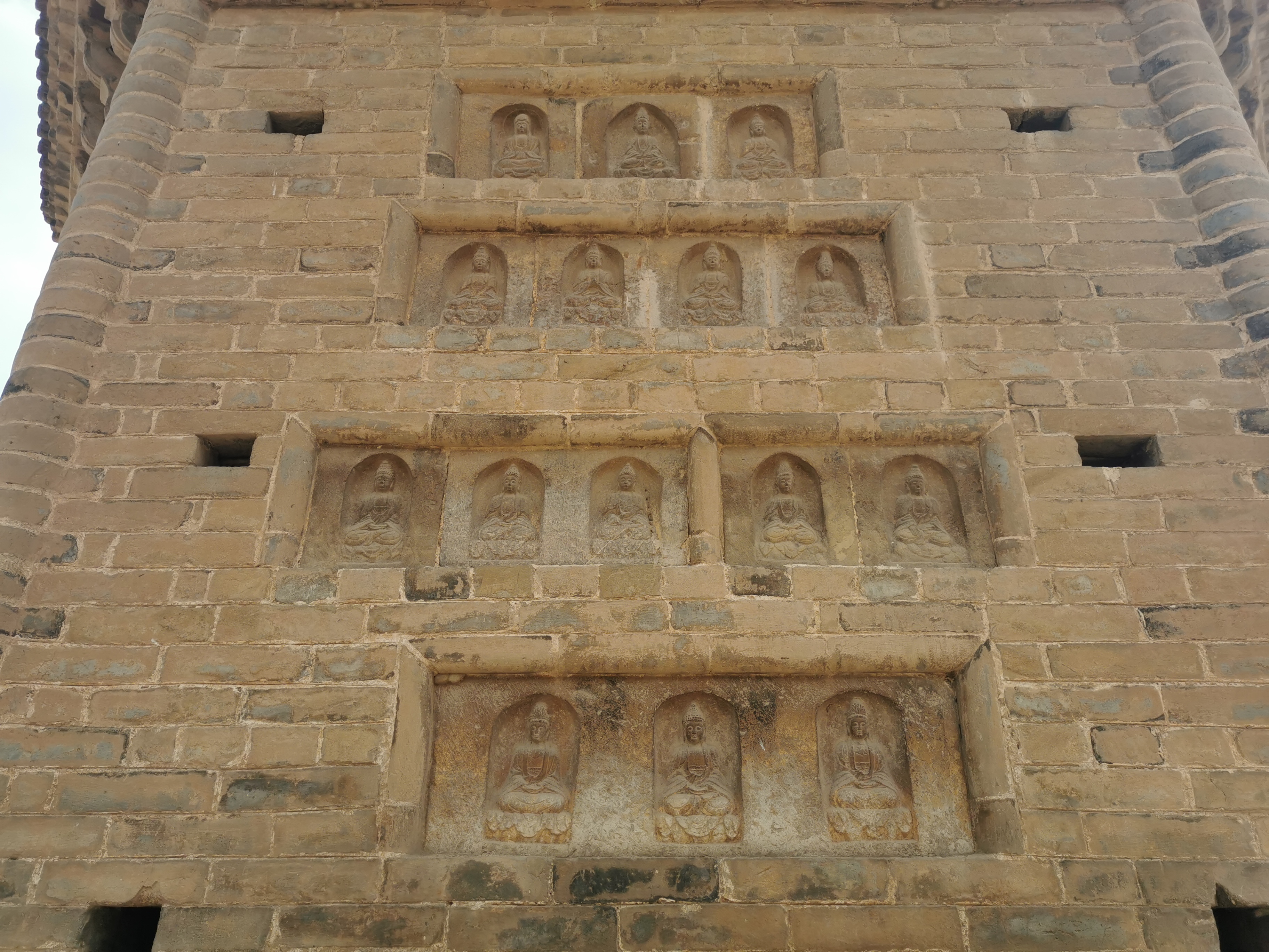 周建山說,唐朝經(jīng)兩宋至遼金時期,是我國古塔發(fā)展的高峰時期。唐宋時期古塔的建筑達(dá)到了空前繁榮的程度。首先從建筑年代看,兩塔都始建于重文輕武的北宋時期。當(dāng)時社會經(jīng)濟(jì)繁榮,文化相對發(fā)達(dá),佛教深入社會生活的各個方面,寺院、佛塔等佛教建筑也遍布各地。二是從建筑關(guān)系看,都曾是當(dāng)時著名寺院——壽圣寺建筑群的重要組成部分,后來寺毀而塔存,塔也因寺而得名。三是從建筑藝術(shù)看,都具有很高的科學(xué)價值。這兩座塔都經(jīng)過了精心設(shè)計,地基穩(wěn)固,結(jié)構(gòu)嚴(yán)謹(jǐn),頗具匠心。特別是商水壽圣寺塔在同類建筑中,樣式別具一格,不僅形體高大,而且施有平座、券門、斗拱、破子欞假窗和剎柱,還有建塔題記等,具有重要的文物價值。四是從佛教藝術(shù)看,都體現(xiàn)了當(dāng)時高超的造像藝術(shù)水平。商水壽圣寺塔室內(nèi)嵌砌有3尊石雕佛像,太康壽圣寺塔身鑲嵌有211尊石雕佛像,這些佛教藝術(shù)造像,莊嚴(yán)慈祥,栩栩如生。五是從佛教發(fā)展歷程看,對研究佛教文化及其傳播具有一定的歷史價值。北宋和明代,統(tǒng)治階級都重視佛教,佛教文化相當(dāng)興盛。這兩座塔都始建于宋、重建于明,就是這種歷史背景下的產(chǎn)物,對佛教文化在豫東大地的傳播,具有實證價值。