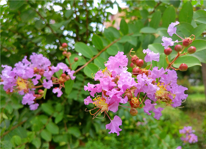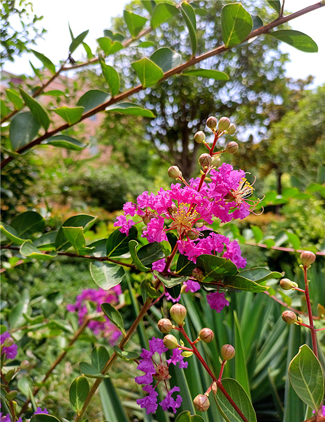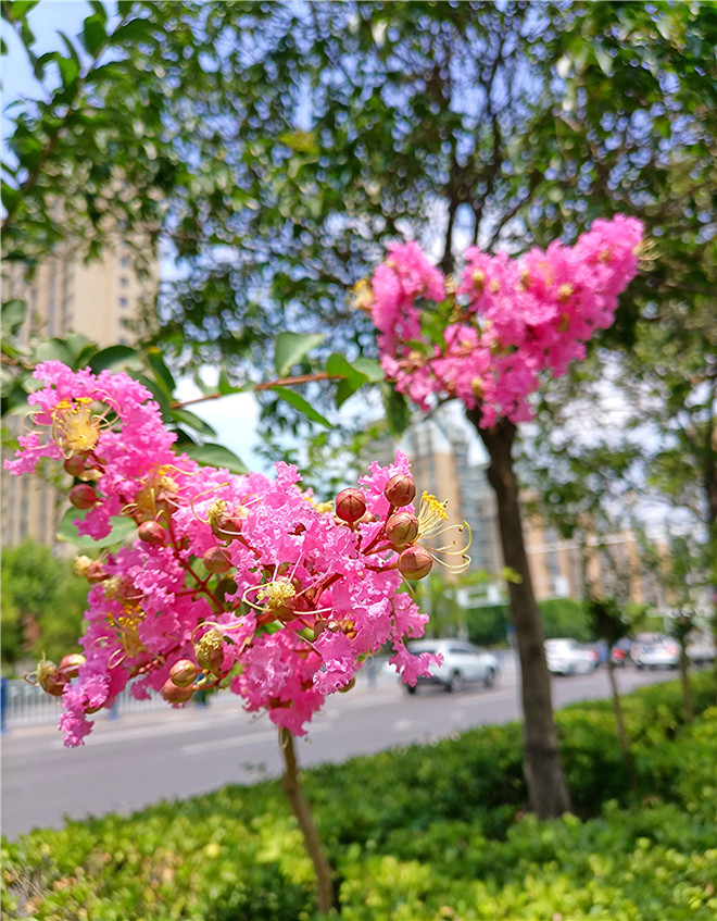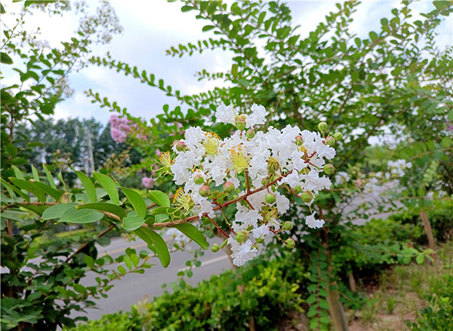 近日,中心城區(qū)的紫薇花悄無聲息地進(jìn)入盛放期。玫紅色、粉白色、淺紫色、純白色……五顏六色的紫薇花盡情地吐露著芬芳。它們像蝴蝶一樣在夏日的微風(fēng)中翩翩起舞,給我們的城市增添了靈動的色彩。②8