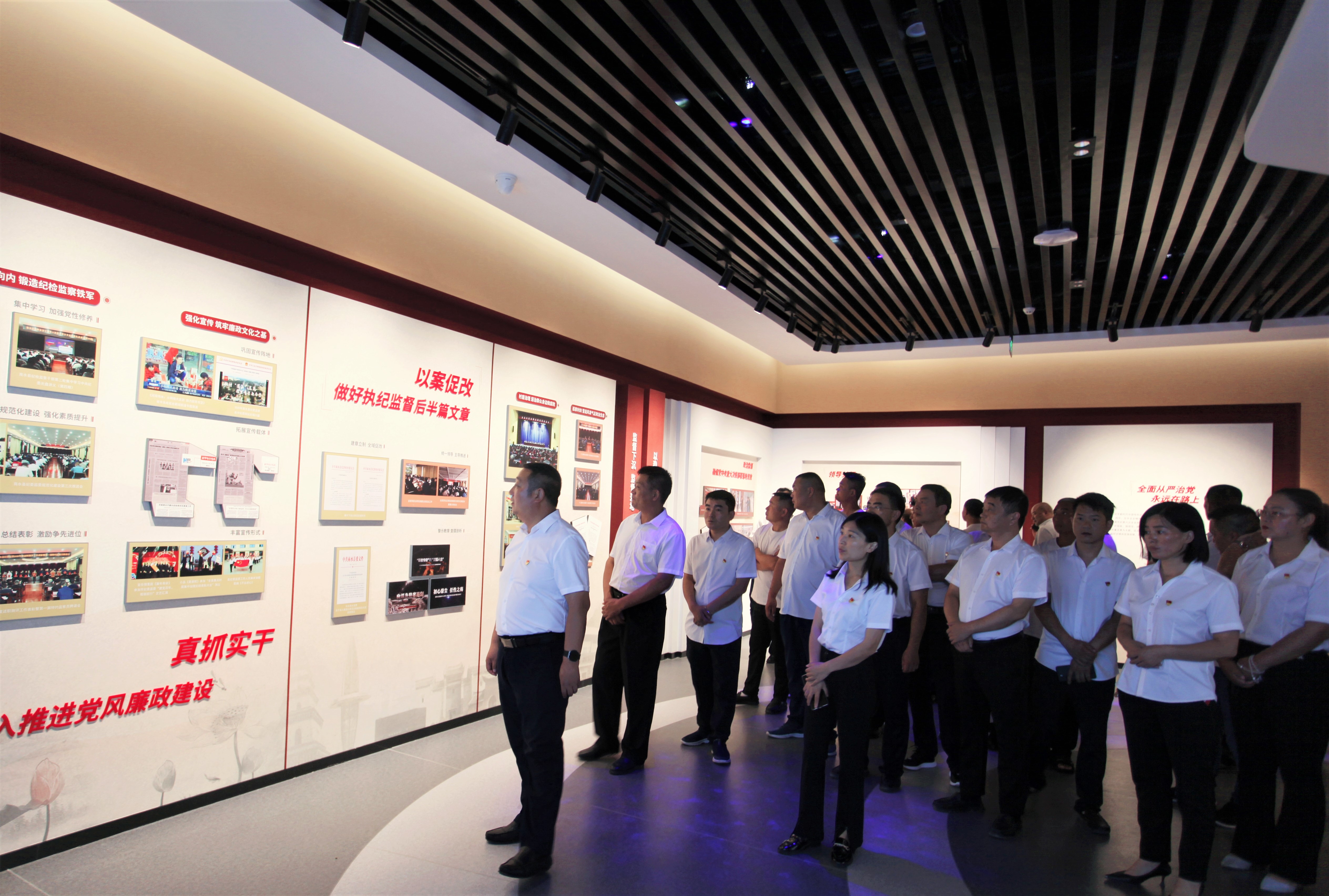 在講解員的帶領(lǐng)下,參觀人員認(rèn)真觀看了每一塊展板、每一張圖片、每一段視頻。廉政警示教育展廳內(nèi)綜合運(yùn)用圖文、場景再現(xiàn)、互動體驗(yàn)及多媒體聲光電等形式,從歷史的深度展示了中國共產(chǎn)黨歷次黨代會不斷加強(qiáng)紀(jì)律建設(shè)、全面從嚴(yán)治黨的偉大歷程,又展示了黨的十八大以來查處的各級領(lǐng)導(dǎo)干部嚴(yán)重違紀(jì)違法和群眾身邊的“微腐敗”案例等,將廉政文化教育、反面典型教育、理想信念教育結(jié)合在一起,形式多樣,內(nèi)容豐富,既有警示又受教育。
