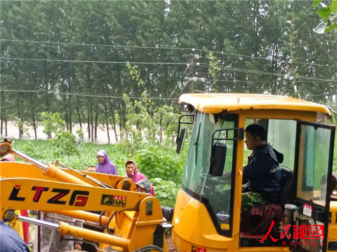 雨越下越大,衛(wèi)河水位持續(xù)上漲,永康段因前期澆地破開(kāi)的口由于水流量過(guò)大,出現(xiàn)缺口,群眾的生命財(cái)產(chǎn)安全受到了威脅,河上巡邏的村干部發(fā)現(xiàn)衛(wèi)河一處排污口不斷往外涌水,立即報(bào)告給張乾書(shū)記,此時(shí),張乾家中剛做好午飯,張書(shū)記把碗往桌上一放,還沒(méi)來(lái)得及吃一口,穿著雨衣就沖出門(mén)外,趕到現(xiàn)場(chǎng),看到情況十分緊急,千鈞一發(fā)之際,他不顧危險(xiǎn),大喊一聲“我來(lái)!大家把沙袋遞給我!”縱身跳入湍流的河中,只見(jiàn)他佝僂起身體,降低重心,以防被急流沖倒,一邊等著岸上接力過(guò)來(lái)的沙袋,在他抬頭等著接沙袋的時(shí)候,雨水打得他的眼睛都睜不開(kāi),他瞇著眼睛將一袋袋沙袋壘到衛(wèi)河封堵口,成功封堵缺口。經(jīng)過(guò)一夜的努力,和此時(shí),已經(jīng)夜里四點(diǎn)鐘,張書(shū)記全身濕透,雙腿被冷水泡得瑟瑟發(fā)抖,剛被人拉上岸,又有人來(lái)說(shuō)共產(chǎn)主義渠永康段又出現(xiàn)決堤。張乾書(shū)記二話沒(méi)說(shuō),又號(hào)召村上幾十人,立即趕到現(xiàn)場(chǎng),指導(dǎo)防汛人員進(jìn)行搶險(xiǎn)?!跋韧跍?,趕緊把水排掉,如果大堤經(jīng)過(guò)長(zhǎng)時(shí)間的浸泡,極容易形成塌方。”仔細(xì)觀察險(xiǎn)情后,張乾趕緊吩咐道。為了填大堤,他親自開(kāi)著鏟車(chē)填放沙袋,但是由于大堤被水沖垮,已經(jīng)承受不住鏟車(chē)的重量,此時(shí),他反應(yīng)迅速,趕緊倒車(chē)返回岸上,幸好沒(méi)有掉入河中,隨即又發(fā)動(dòng)村內(nèi)群眾開(kāi)來(lái)自家的兩輪、三輪車(chē)?yán)^續(xù)王河堤上面運(yùn)送沙袋,但是由于水流量太大,杯水車(chē)薪,又聯(lián)系鎮(zhèn)上的領(lǐng)導(dǎo),協(xié)調(diào)了周邊村莊的黨員群眾一起,經(jīng)過(guò)連夜奮戰(zhàn),終于將決堤處堵住。