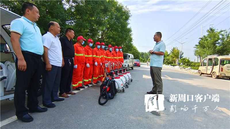 “老關(guān),你們?nèi)膫€(gè)人去女?huà)z景區(qū)消殺。老王,老溫你們兩個(gè)人去村莊消殺,尤其是旮旯處、垃圾堆、屋后等隱蔽重點(diǎn)區(qū)域一定消殺徹底,不留空白。在村莊內(nèi)進(jìn)行消殺時(shí),一定要和群眾交代好防疫消毒時(shí)的注意事項(xiàng)?!?月30日9時(shí)許,來(lái)自廣州市鴻鷹害蟲(chóng)防治服務(wù)有限公司周口分公司的10多名愛(ài)心人士載著4臺(tái)機(jī)動(dòng)手推式滯留噴霧機(jī)、1臺(tái)電動(dòng)背負(fù)式超低容量噴霧機(jī)、1臺(tái)大型車(chē)載式超低容量噴霧機(jī)和230公斤消毒劑,來(lái)到西華聶堆鎮(zhèn)思都崗村后,該公司負(fù)責(zé)人許金山就向工作人員一一分配消殺任務(wù)。