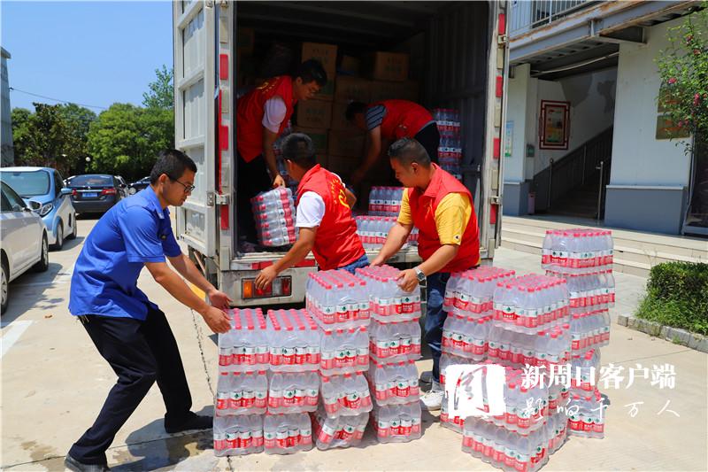 當天中午,掛著印有“昨天大家助我脫貧,今天我為救災(zāi)出力!”條幅的防汛救災(zāi)物資運輸車抵達周口港區(qū)?!耙皇乔皟商旆烙_風(fēng)‘煙花’,我們早就來了。”隆古村黨支部書記段長春一下車就連忙慰問眾人。一同前往的還有6位年輕力壯的志愿者,他們不辭勞苦,和港區(qū)消防、城管人員一起頂著烈日,用了半個多小時將滿車物資搬運到位。