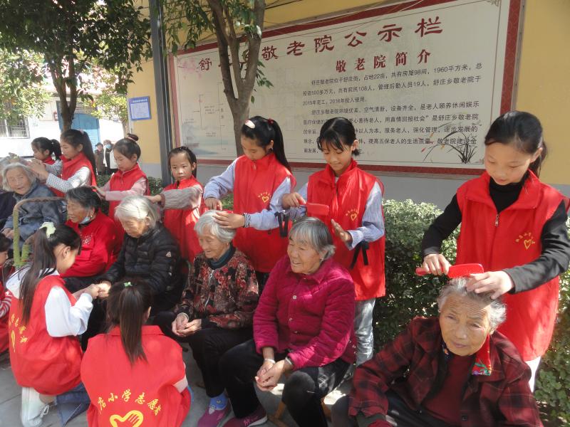 10月13日,商水縣舒莊鄉(xiāng)杜店小學(xué)的愛(ài)心志愿者來(lái)到舒莊鄉(xiāng)敬老院為老人們梳頭。為對(duì)學(xué)生進(jìn)行愛(ài)老敬老教育,重陽(yáng)節(jié)前夕,杜店小學(xué)組織20名愛(ài)心志愿者到鄉(xiāng)敬老院為老人們打掃衛(wèi)生、梳頭、疊被。②13記者 付永奇 通訊員 喬連軍攝
