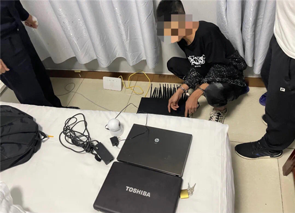 經(jīng)過3天3夜的蹲守,辦案民警摸清了犯罪嫌疑人的活動軌跡,10月13日晚上,吳臺派出所所長朱浩宇帶領民警賈坤陽等人果斷出擊,成功搗毀該涉詐窩點,將嫌疑人覃某宗和陳某欽抓獲,查獲“GOIP”設備1臺、電腦2臺、手機2部、路由器1臺、攝像頭1個。