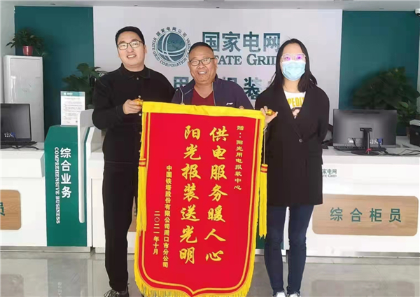 “供電公司的陽(yáng)光業(yè)擴(kuò)報(bào)裝服務(wù)真不錯(cuò),我們申請(qǐng)用電只需要在網(wǎng)上提交材料,有什么不清楚不明白的,電話就能直接溝通。我們的一個(gè)5G基站點(diǎn)最快用了不到3天就完成了用電報(bào)裝流程,這服務(wù)效率,值得我們學(xué)習(xí)??!”近日,在國(guó)網(wǎng)周口供電公司陽(yáng)光報(bào)裝中心,中國(guó)鐵塔股份有限公司周口分公司業(yè)務(wù)經(jīng)理朱義嶺一邊將印有“供電服務(wù)暖人心 陽(yáng)光報(bào)裝送光明”的錦旗遞給供電工作人員,一邊感謝該公司對(duì)鐵塔基站建設(shè)提供的支持。