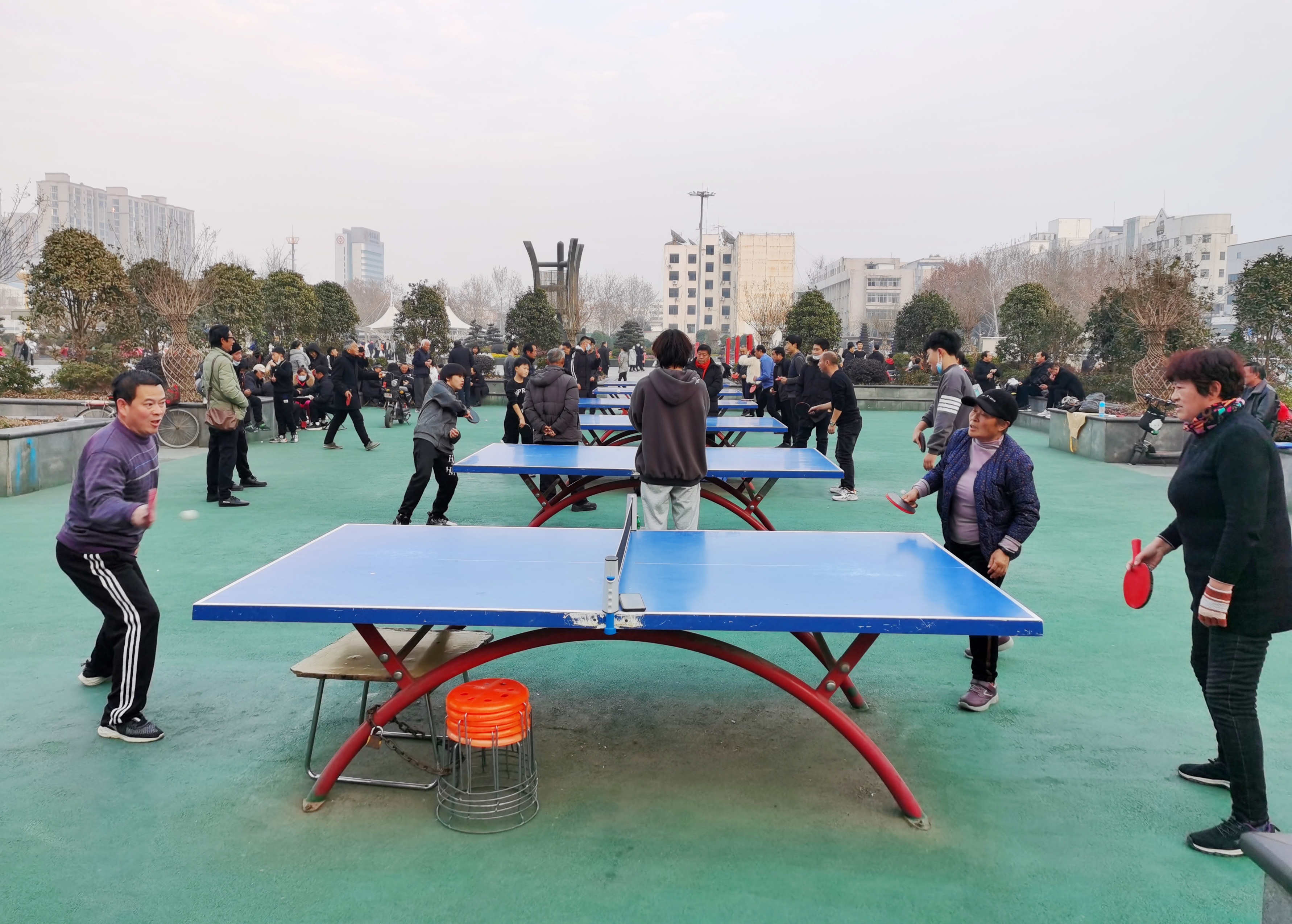 不少市民在乒乓球場(chǎng)上揮灑汗水