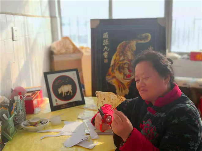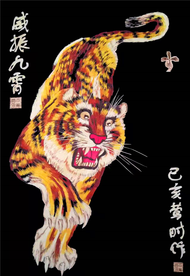 “虎在中國是極其有力量的動物。”1月25日,秸稈畫技藝代表性傳承人、中國民間文藝家協(xié)會國家級會員王春梅告訴記者,她耗時近半年創(chuàng)作的秸稈畫《威震九霄》已完成。記者看到,作品中的老虎長半米有余,威風(fēng)凜凜、活靈活現(xiàn),用平面的方式展現(xiàn)了立體的效果。“2022年是虎年。在古代,老虎就以威風(fēng)凜凜的形象被視為勇氣的象征,來表現(xiàn)軍人的勇敢和堅(jiān)強(qiáng)。古時候關(guān)于將士大臣的美譽(yù)就有虎將、虎臣、虎士等。”王春梅說。