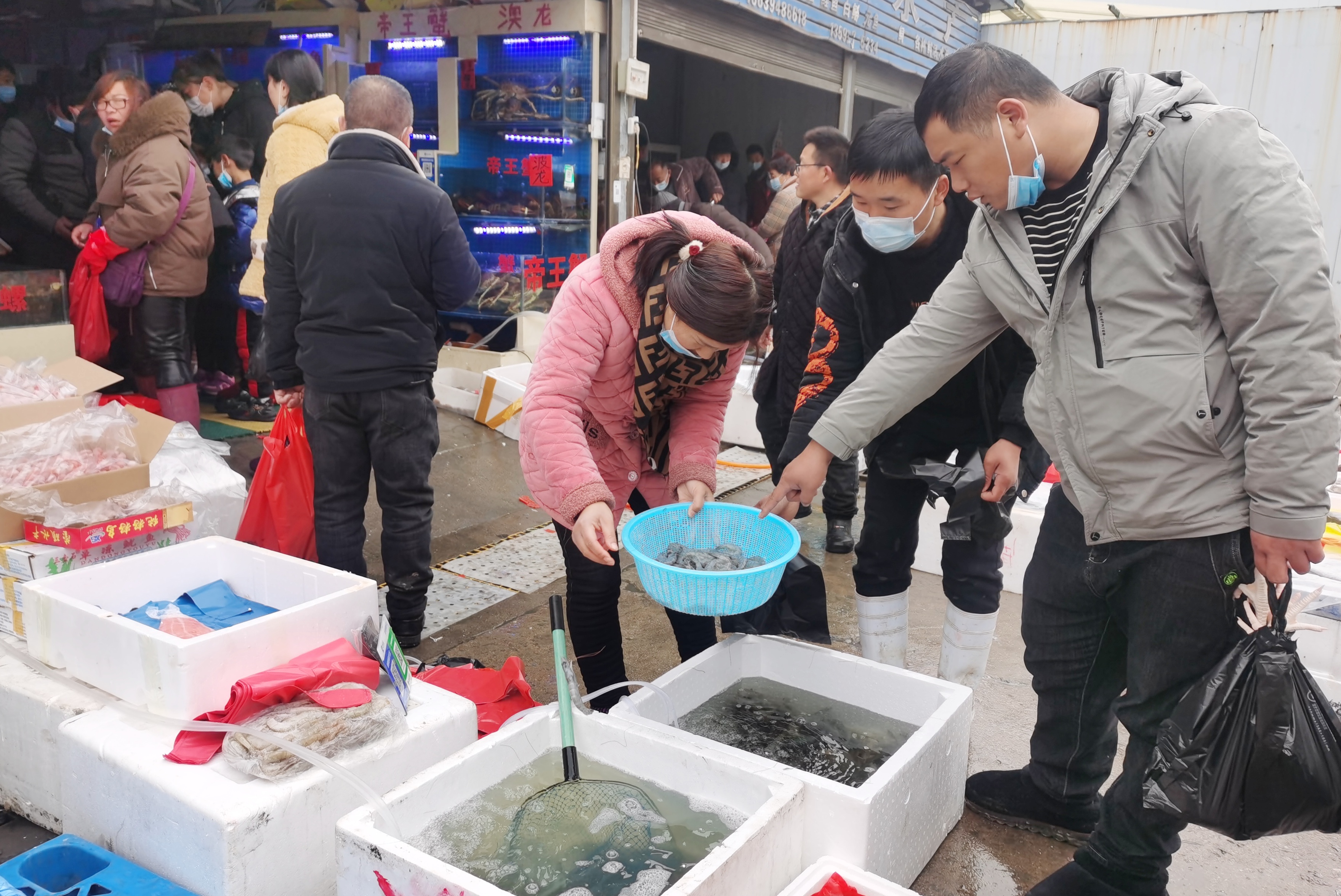 1月27日,黃淮大市場里人來人往,前來選購的市民絡(luò)繹不絕。 春節(jié)臨近,市民置辦年貨的熱情越來越高,黃淮大市場內(nèi)年味十足,蔬菜、水產(chǎn)、熟食、副食品等分區(qū)鮮明,各種商品供應(yīng)充足,呈現(xiàn)購銷兩旺態(tài)勢。②11