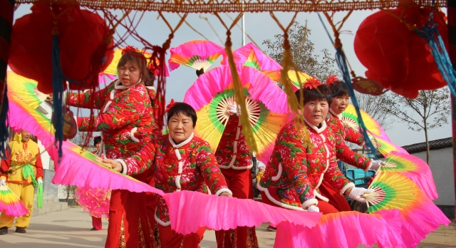 2月13日,商水縣郝崗鎮(zhèn)呂場(chǎng)村文藝愛好者表演了旱船、扇子舞等傳統(tǒng)節(jié)目。