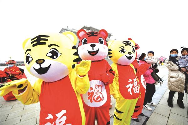 2月15日,幾名工作人員身穿萌虎造型服裝向市民招手。當(dāng)日,由市文化廣電和旅游局主辦,市文化館、市美術(shù)館、市圖書館承辦的“我們的節(jié)日‘元宵節(jié)’——周口市群眾文化系列活動(dòng)‘寅虎賀春鬧元宵’”在市文化藝術(shù)中心舉行。