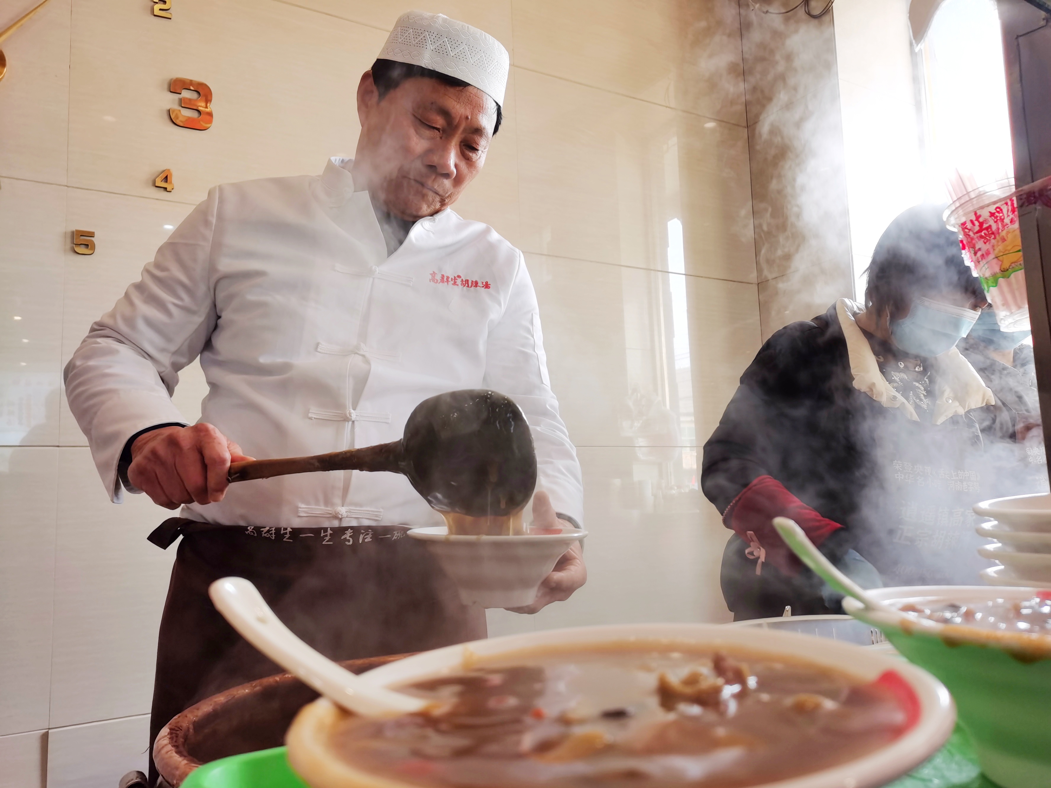 在老佟家胡辣湯店,趕在新年即將到來時喝湯的老百姓