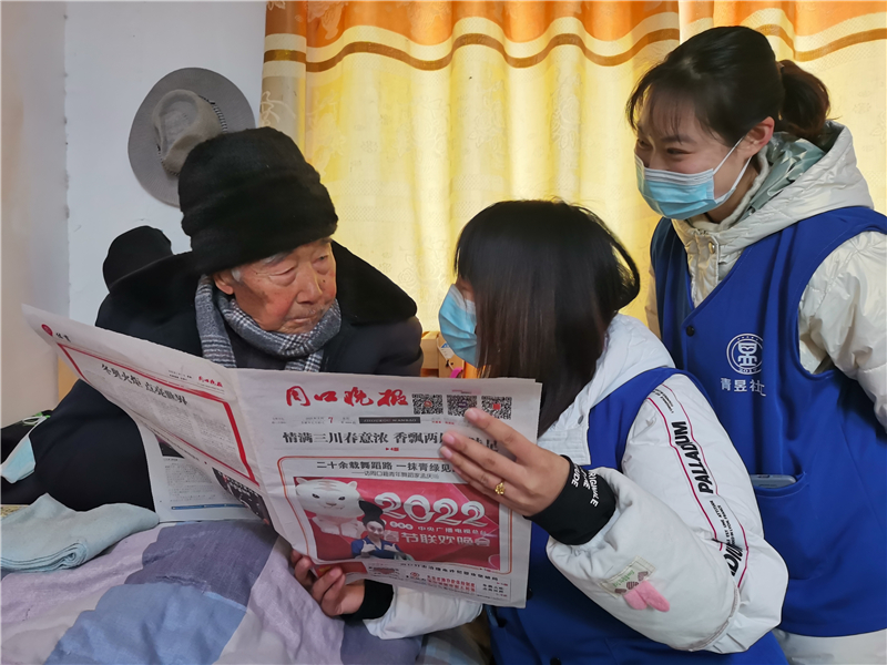 今年80歲的李東明,喜歡讀書看報,但是由于年齡原因視力逐漸下降,讀書看報越來越不方便。自從敬老院內(nèi)設(shè)立了社工站,他每天最高興的事就是社工為他讀報紙上的內(nèi)容。“幸虧這些孩子的陪伴,讓我的老年生活越來越幸福!”李東明說。