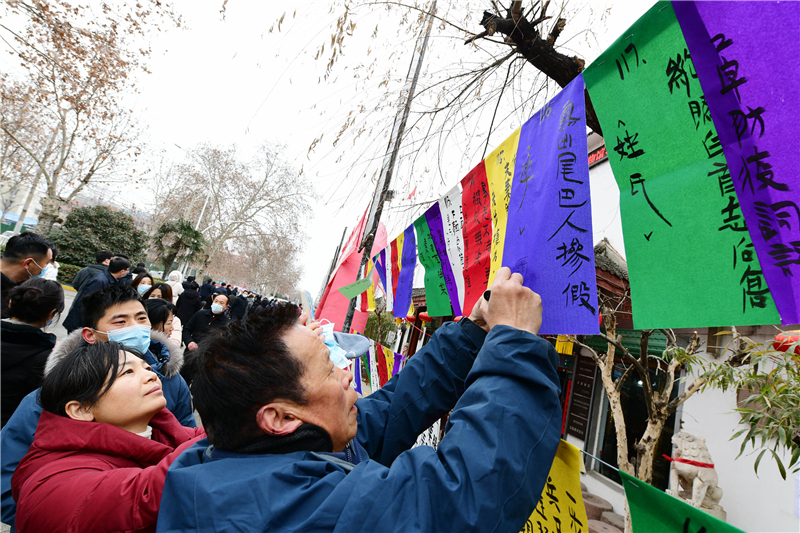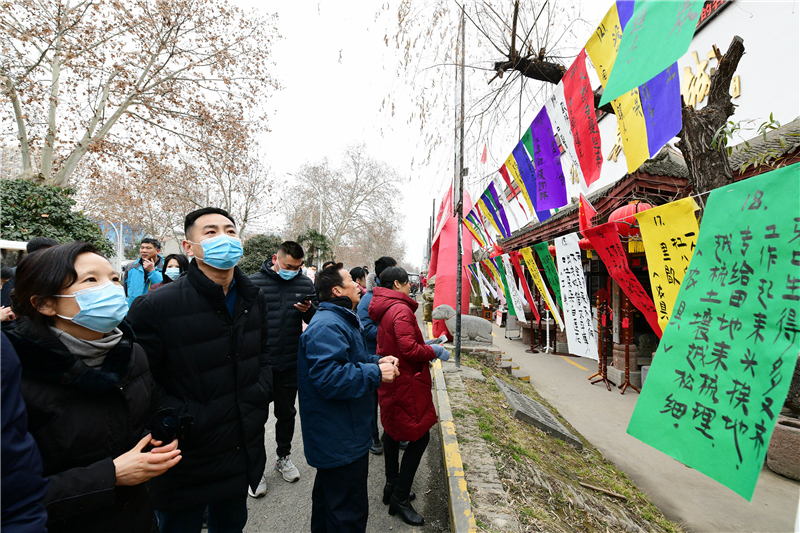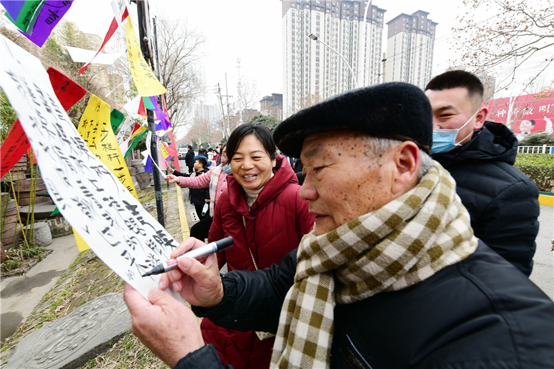 2月15日上午9時(shí),由周口市文化廣電和旅游局、周口市文物局主辦,市博物館、市文物保護(hù)中心、市民協(xié)、華威民俗文化博物苑承辦,市民協(xié)燈謎學(xué)專委會(huì)、川匯區(qū)民協(xié)、川匯區(qū)燈謎學(xué)會(huì)協(xié)辦的元宵節(jié)燈謎競(jìng)猜活動(dòng),主會(huì)場(chǎng)在市文化藝術(shù)中心廣場(chǎng),分會(huì)場(chǎng)在華威民俗文化博物苑,吸引謎語(yǔ)愛(ài)好者踴躍競(jìng)猜,甚為熱鬧。在華威民俗文化博物苑分會(huì)場(chǎng)的謎語(yǔ)現(xiàn)場(chǎng),舉辦方以傳統(tǒng)形式進(jìn)行,備了300條謎語(yǔ),用毛筆將謎語(yǔ)寫在紅藍(lán)綠白紙張上,懸掛門前,讓市民競(jìng)猜,氣氛熱烈濃厚。舉辦方還特意準(zhǔn)備了跳繩、網(wǎng)球拍、乒乓球拍、飛鏢盤、跳棋等600份獎(jiǎng)品,獎(jiǎng)給猜中謎底的市民。①2