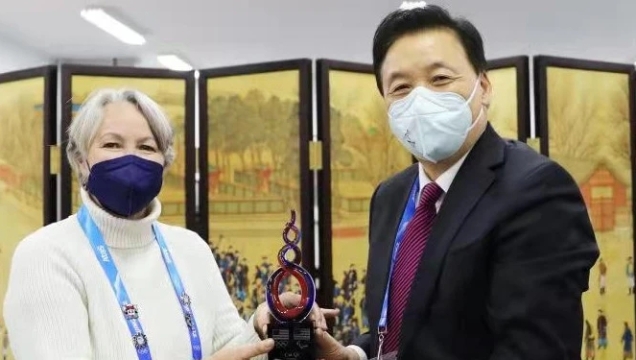 據(jù)北京冬奧組委消息,北京冬奧組委副主席楊樹安近日應(yīng)約在北京冬奧村會(huì)見美國奧委會(huì)與殘奧委會(huì)主席、美國冬奧代表團(tuán)團(tuán)長萊昂斯,并代為接受美奧委會(huì)向北京冬奧組委主席蔡奇贈(zèng)予的榮譽(yù)獎(jiǎng)杯。