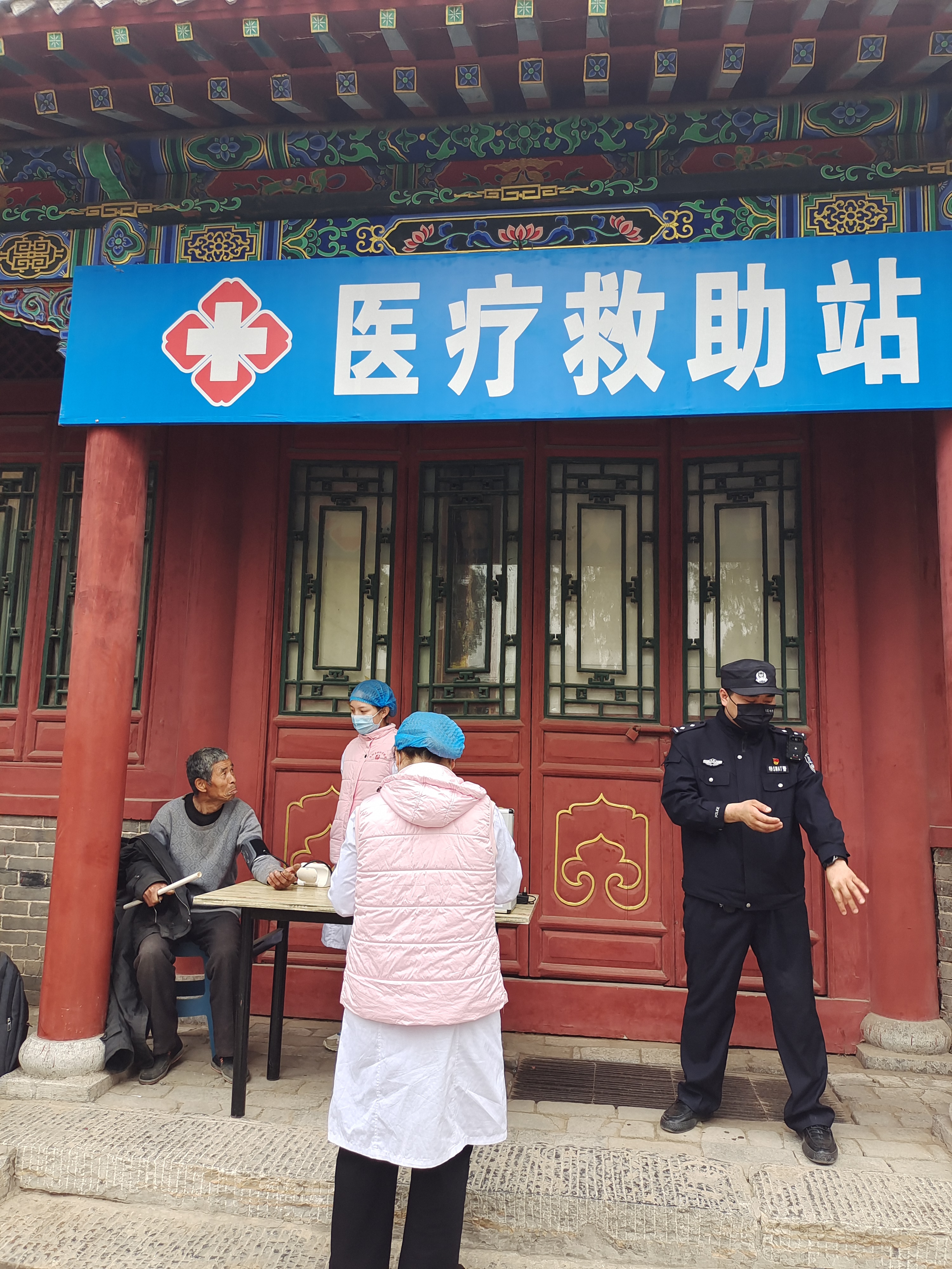 量血壓的姑娘叫蘇圓圓,據(jù)她介紹,全淮陽(yáng)20多家醫(yī)院都派人在太昊陵各處設(shè)置“醫(yī)療救助站”,游客有任何不舒服可就近詢問(wèn)觀察,各站都配有應(yīng)急藥箱,如有需要免費(fèi)使用?!斑@段時(shí)間人流量大,大家一定要遵守各項(xiàng)安全措施,避免意外發(fā)生。”蘇圓圓說(shuō)。