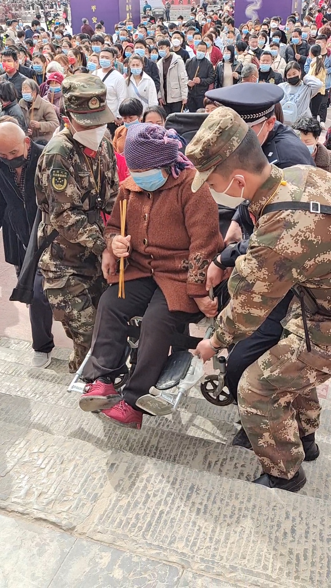 只要看到有腿腳不便的人上臺(tái)階不方便,附近的人民子弟兵立刻快步上前,扶上臺(tái)階。一位坐輪椅的老太太進(jìn)不去午朝門,3位武警官兵、一名警察以及熱心群眾齊心協(xié)力抬起輪椅,穩(wěn)穩(wěn)地把老太太抬進(jìn)門里。不等被幫助的人說(shuō)聲“謝謝”,這些子弟兵就快速回到崗位,有人說(shuō)他們戴著口罩看不到模樣,想知道他們的名字,他們說(shuō):“名字不重要,為人民服務(wù)最重要!”