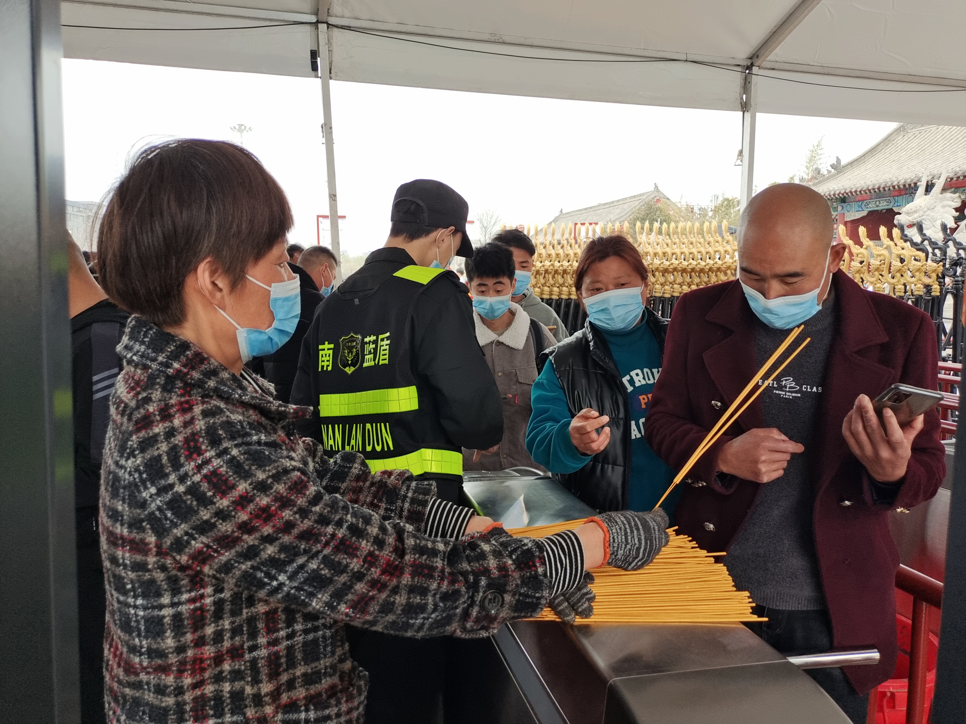 “這是您的祈福香,請(qǐng)拿好?!碧涣甑拿總€(gè)入口,既有專人檢查私自帶香行為,也有工作人員為游客免費(fèi)發(fā)放線香。家住淮陽(yáng)區(qū)的李姐是其中一員,她早上5時(shí)30分就到達(dá)景區(qū),領(lǐng)取線香并整理,方便為游客發(fā)放?!爸灰€有游客來(lái),我們就不休息,要把祈福的心愿送到他們手中,并引導(dǎo)他們文明燒香、文明祭祀。”李姐說(shuō)。