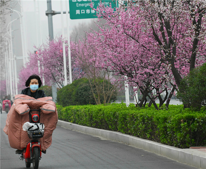 近日,隨著氣溫回升,紫葉李、美人梅等花期較早的花卉品種已經(jīng)盛開(kāi)。記者在我市中心城區(qū)慶豐街看到,粉紅色的美人梅已經(jīng)盛開(kāi),為人們開(kāi)啟賞花季。周口公園內(nèi)各種花兒爭(zhēng)相開(kāi)放,為游人提供踏青賞花的好去處。③10