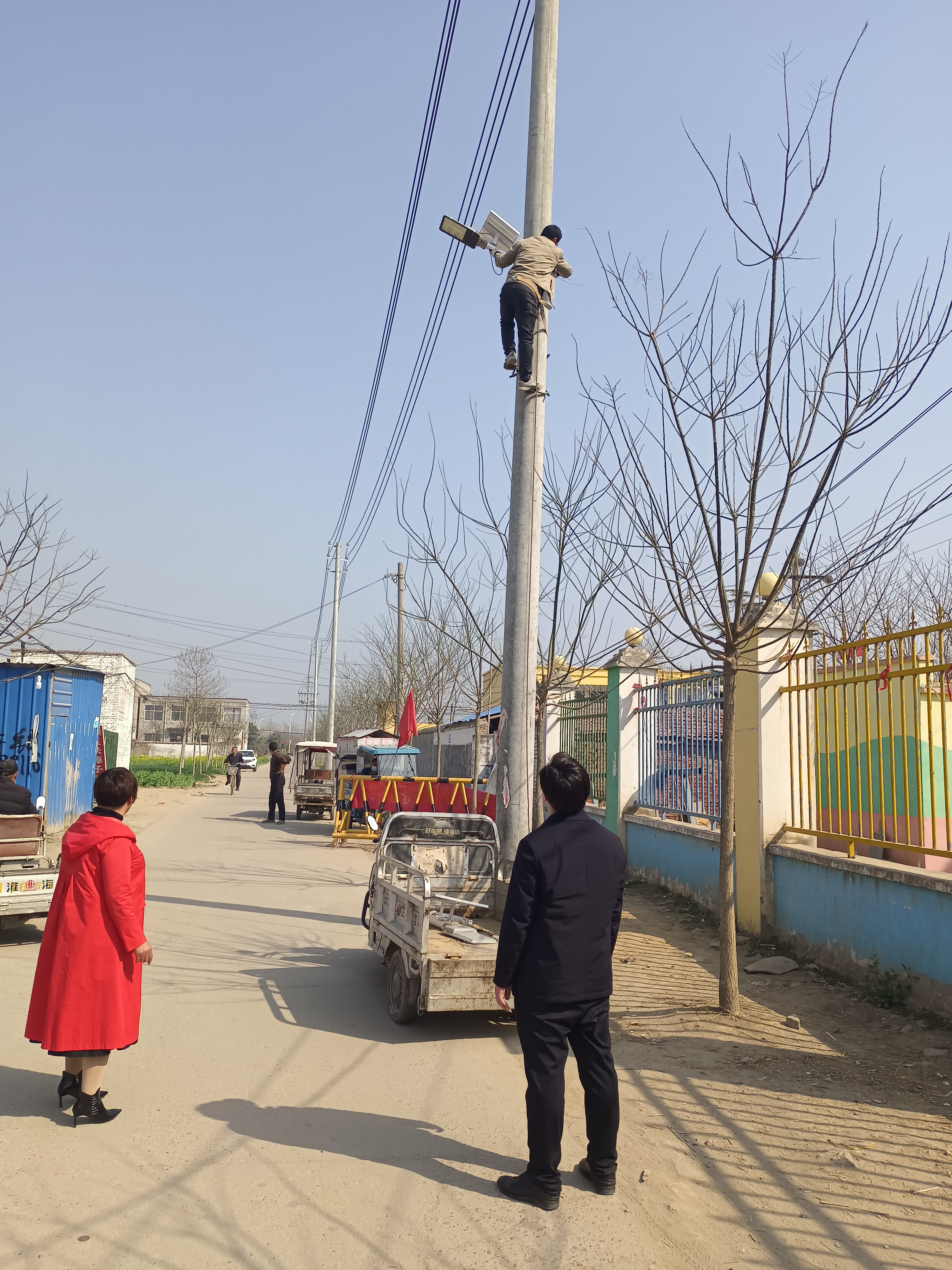 3月9日,趙立峰花費(fèi)3000多元從網(wǎng)上訂購了15盞太陽能路燈,直接郵寄到了村委。很快,村委就找人將15盞太陽能路燈安裝完畢,令人眼前一亮。