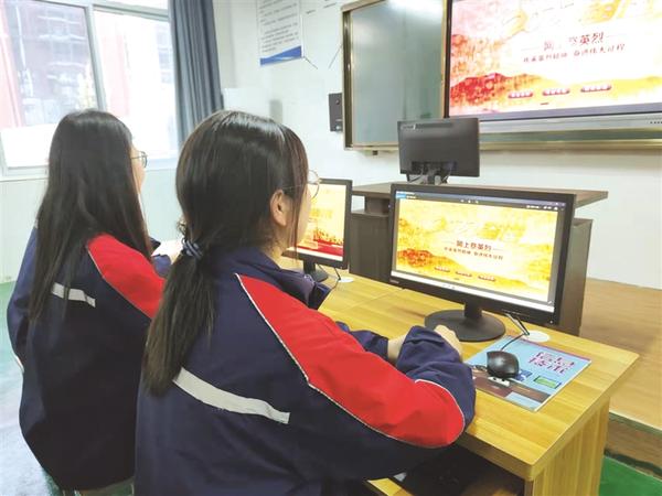 3月29日,項(xiàng)城市名仕路學(xué)校的兩名學(xué)生正在聽清明節(jié)網(wǎng)上祭奠英烈愛國主義思政課。