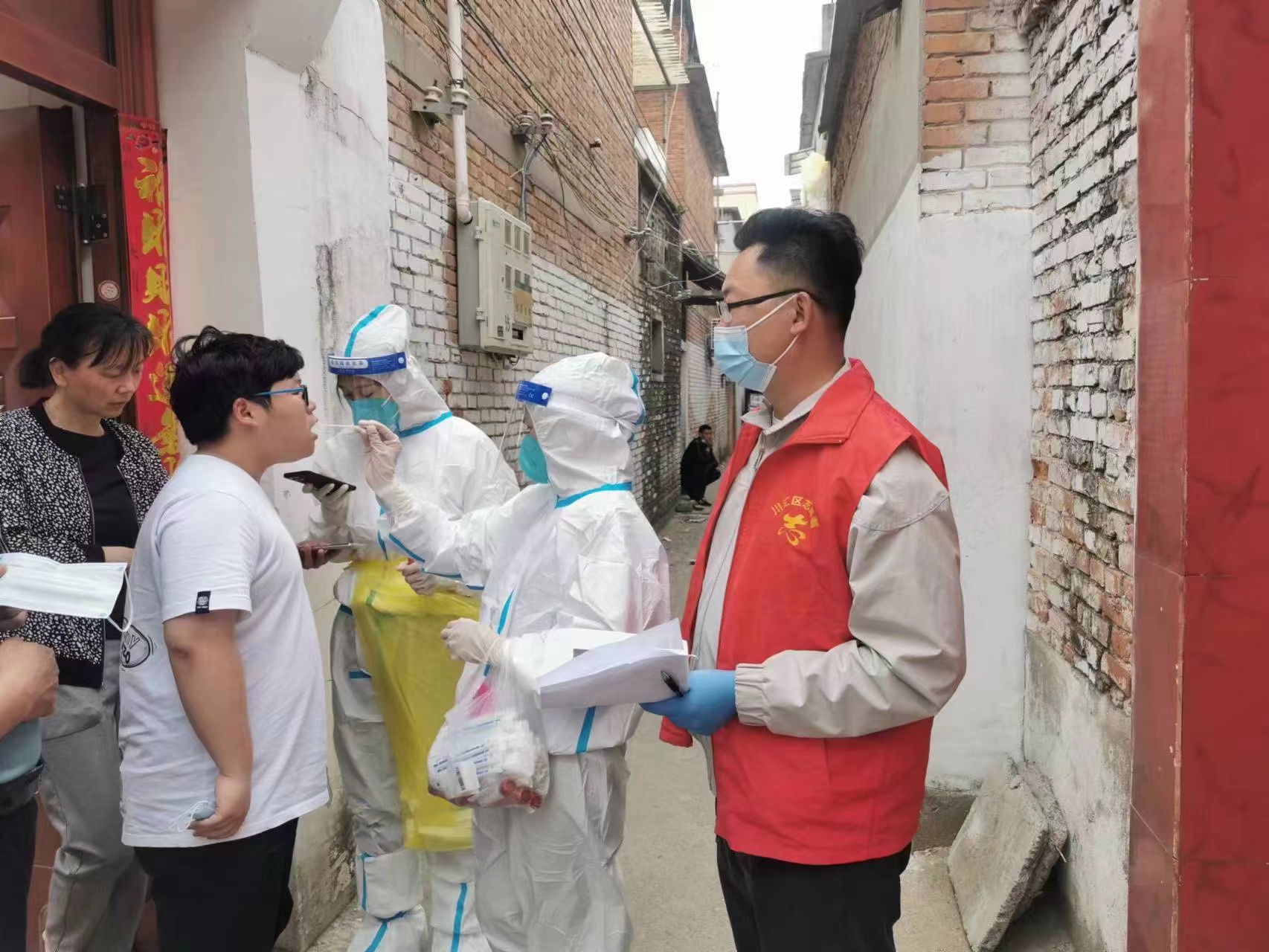 在入戶核酸檢測過程中,群眾嚴(yán)格按照社區(qū)工作人員的安排,不流動,準(zhǔn)備好身份證,如實(shí)填寫信息,等待醫(yī)護(hù)人員上門采樣,整個過程嚴(yán)謹(jǐn)規(guī)范、秩序井然。