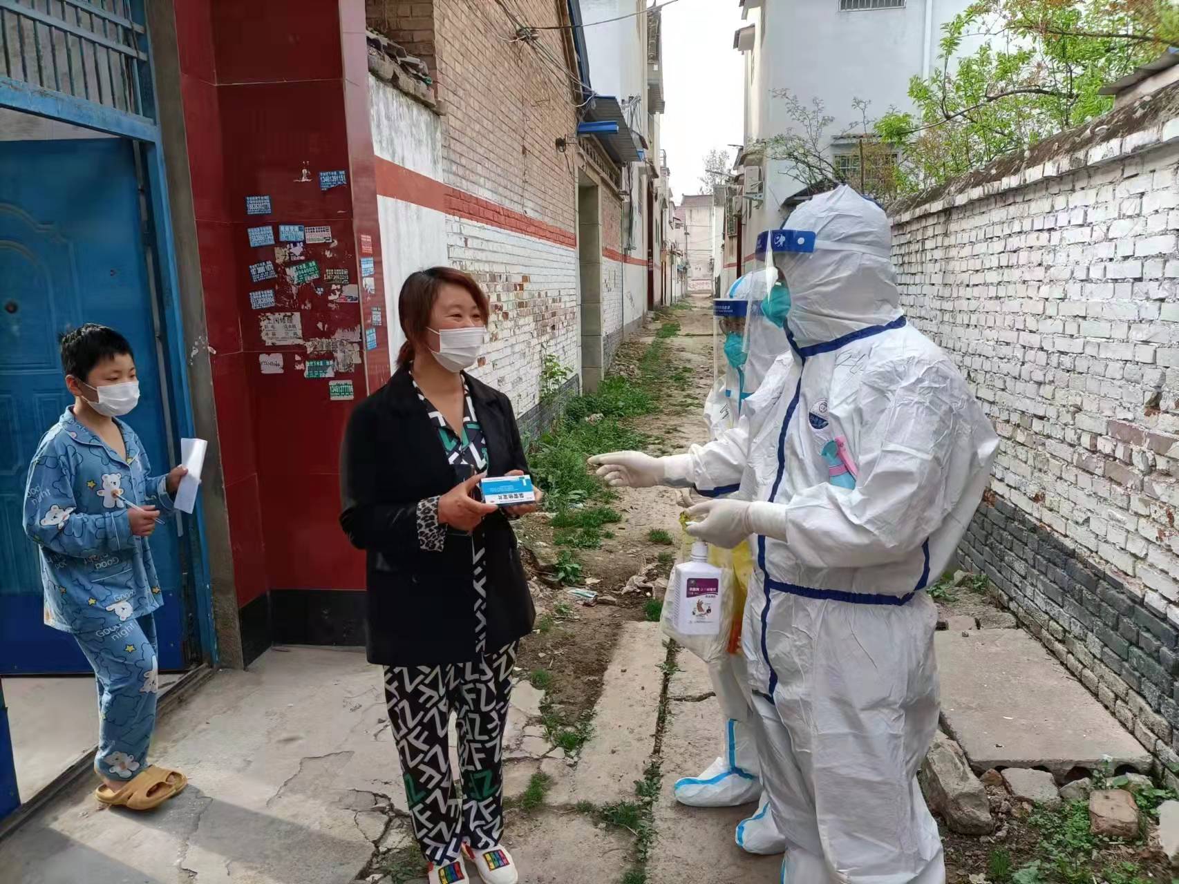 到達(dá)太康后,王群禮被分到了城關(guān)回族鎮(zhèn)封控區(qū)進(jìn)行入戶核酸采集,當(dāng)時(shí)的他也很緊張,認(rèn)真地穿防護(hù)服,熟記采集核酸的每一個(gè)動(dòng)作要領(lǐng),然后投身抗疫最前線。在入戶采樣的時(shí)候,王群禮發(fā)現(xiàn)有一個(gè)小女孩獨(dú)自在家,她每次聽到敲門聲都是先開一點(diǎn)縫,悄悄觀察外面,當(dāng)看到是防疫人員時(shí),才慢慢打開門?!拔铱梢钥闯鏊目謶趾蜔o(wú)助,不知道她晚上怕不怕,會(huì)不會(huì)做飯,問(wèn)她怎么吃飯,她也不說(shuō)話,我心里很不是滋味?!睆哪翘扉_始,王群禮每次入戶采核酸的時(shí)候,就幫她帶點(diǎn)吃的,王群禮會(huì)把他的早餐留給她,還把自己的水果、零食也都送給她。