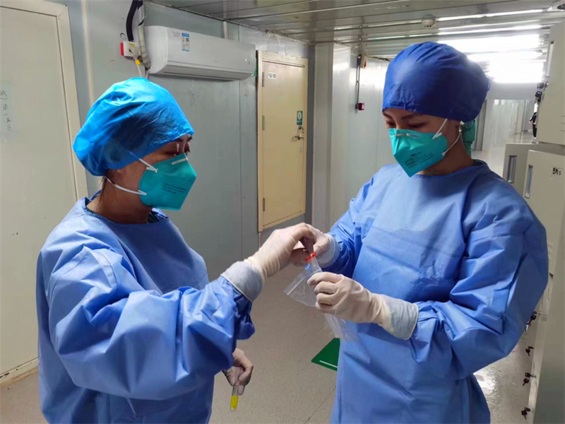 在崎伯山醫(yī)院支援的每一天,劉琦和同事們“挖戰(zhàn)壕”“砌堡壘”“鑄鎧甲”,不放過一點可能造成疫情擴散的隱患,用自己的實際行動守護著每一位醫(yī)患人員的平安。劉琦說:“進入病區(qū)以后每天的壓力都很大,特別是每天的核酸結(jié)果出來前,會擔(dān)心看到醫(yī)務(wù)人員感染的消息,但看到?jīng)]有一人感染新冠肺炎,作為一名感控人員感到很欣慰!”