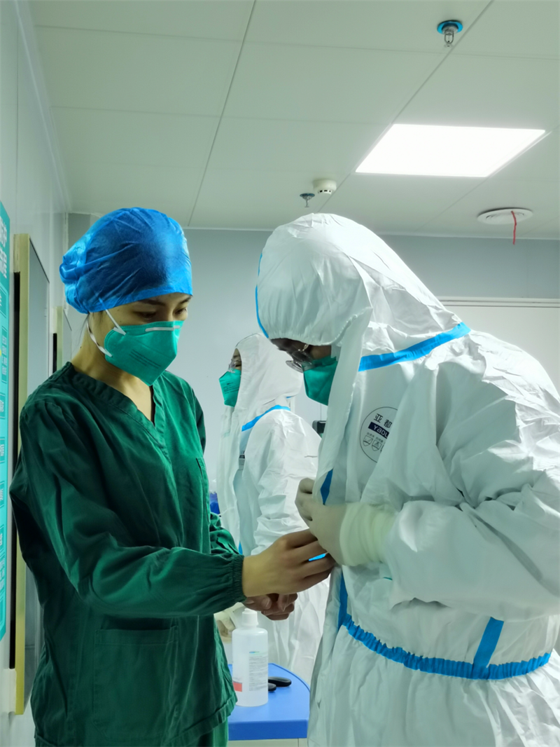 在岐伯山醫(yī)院,劉琦的主要工作職責(zé)是對病區(qū)工作人員全流程監(jiān)督、指導(dǎo)各區(qū)域工作人員防護用品的正確使用,確保醫(yī)務(wù)人員的安全,同時,對醫(yī)務(wù)人員工作全過程各項制度落實進行督導(dǎo),指導(dǎo)并開展醫(yī)院感染各項監(jiān)測工作,應(yīng)急處理各類突發(fā)事件,對存在問題查找原因,保障各項感控措施落實到位。