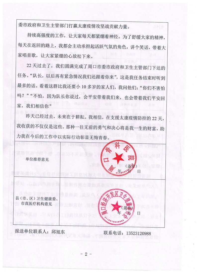 昨天已經(jīng)過去,未來在于耕耘。我相信,在支援太康疫情防控的22天,我收獲的不僅僅是這些。那種一往無前的勇氣和決心將是我一生的財(cái)富,助我在今后的工作中以實(shí)際行動(dòng)彰顯無悔者春。②16