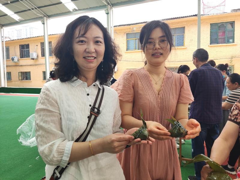 “雖然我平常很少包粽子,但還是挺簡(jiǎn)單的?!蔽乃蓮?qiáng)邊說(shuō)邊包,用繩子將粽子纏繞好,用牙咬住繩子的一頭,一手拿粽子,另一手將繩子打結(jié)。整個(gè)過(guò)程一氣呵成,引來(lái)不少人前來(lái)學(xué)習(xí)。