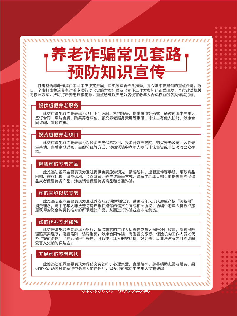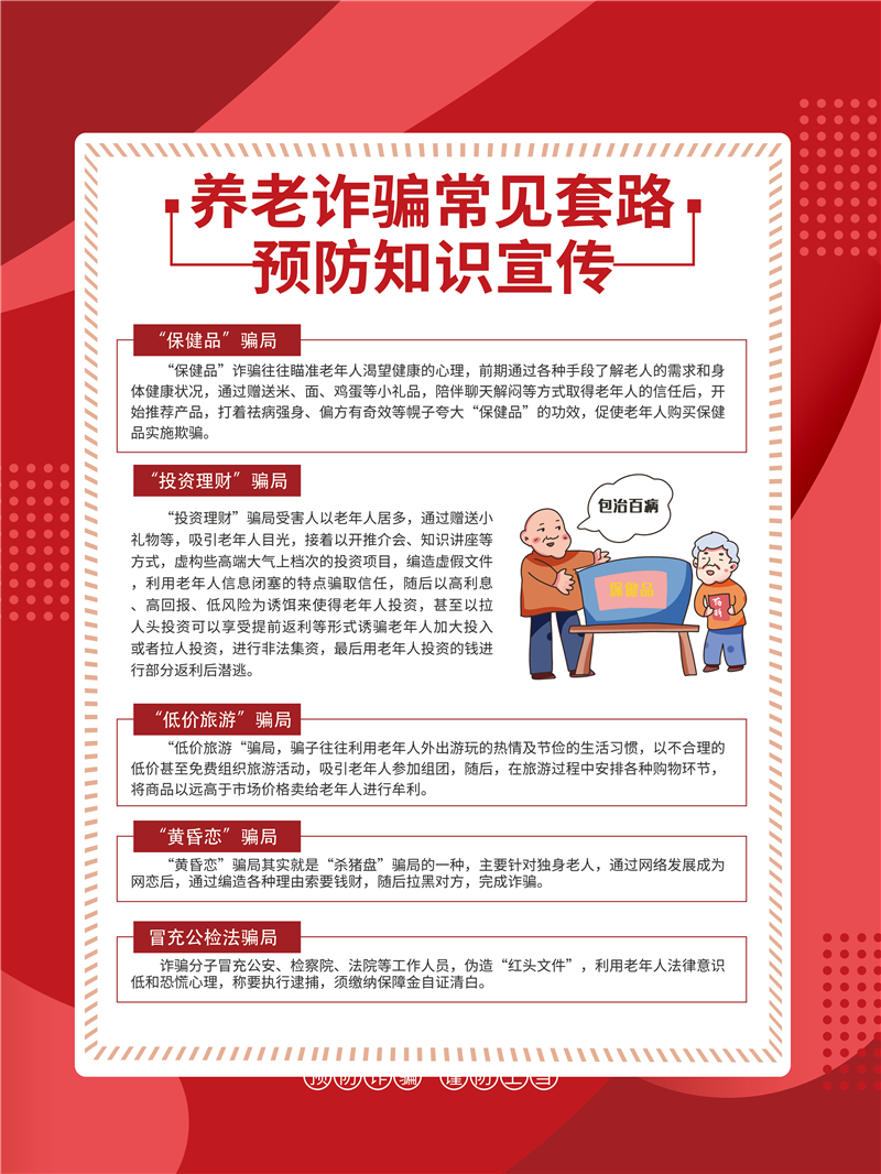 養(yǎng)老詐騙常見套路預(yù)防知識宣傳